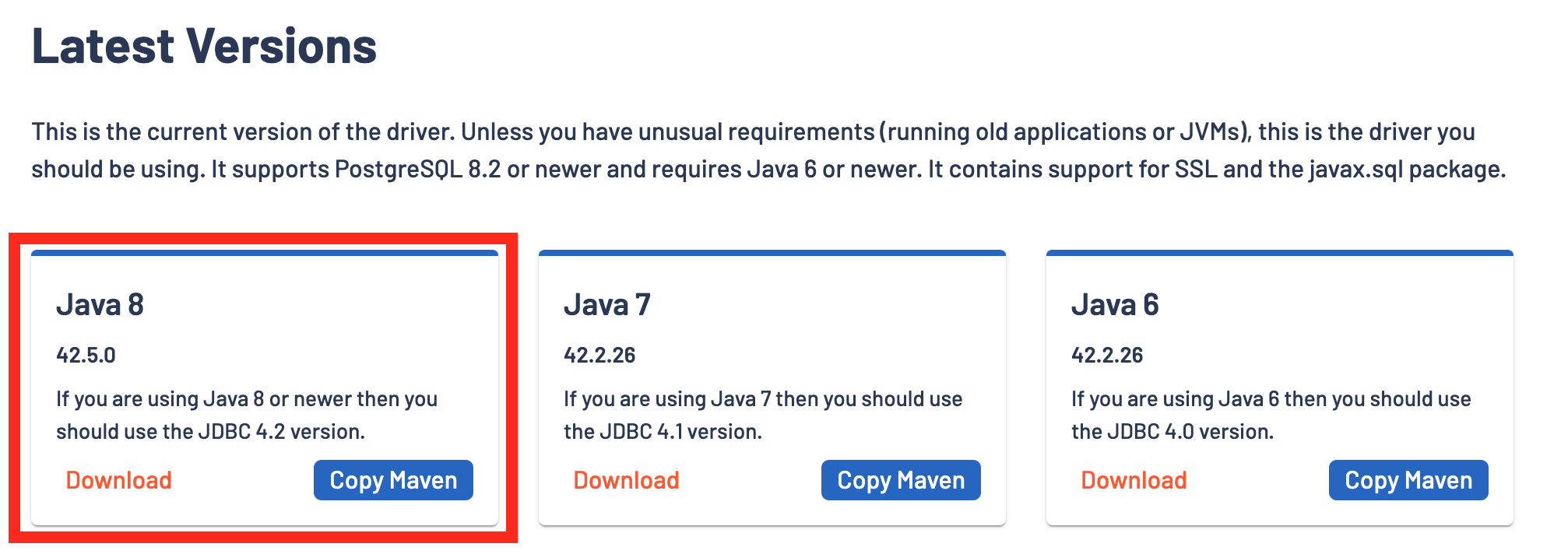 Link: https://jdbc.postgresql.org/download/#latest-versions
