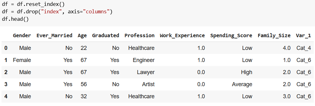 df = df.drop(["Segmentation", “ID”], axis="columns")